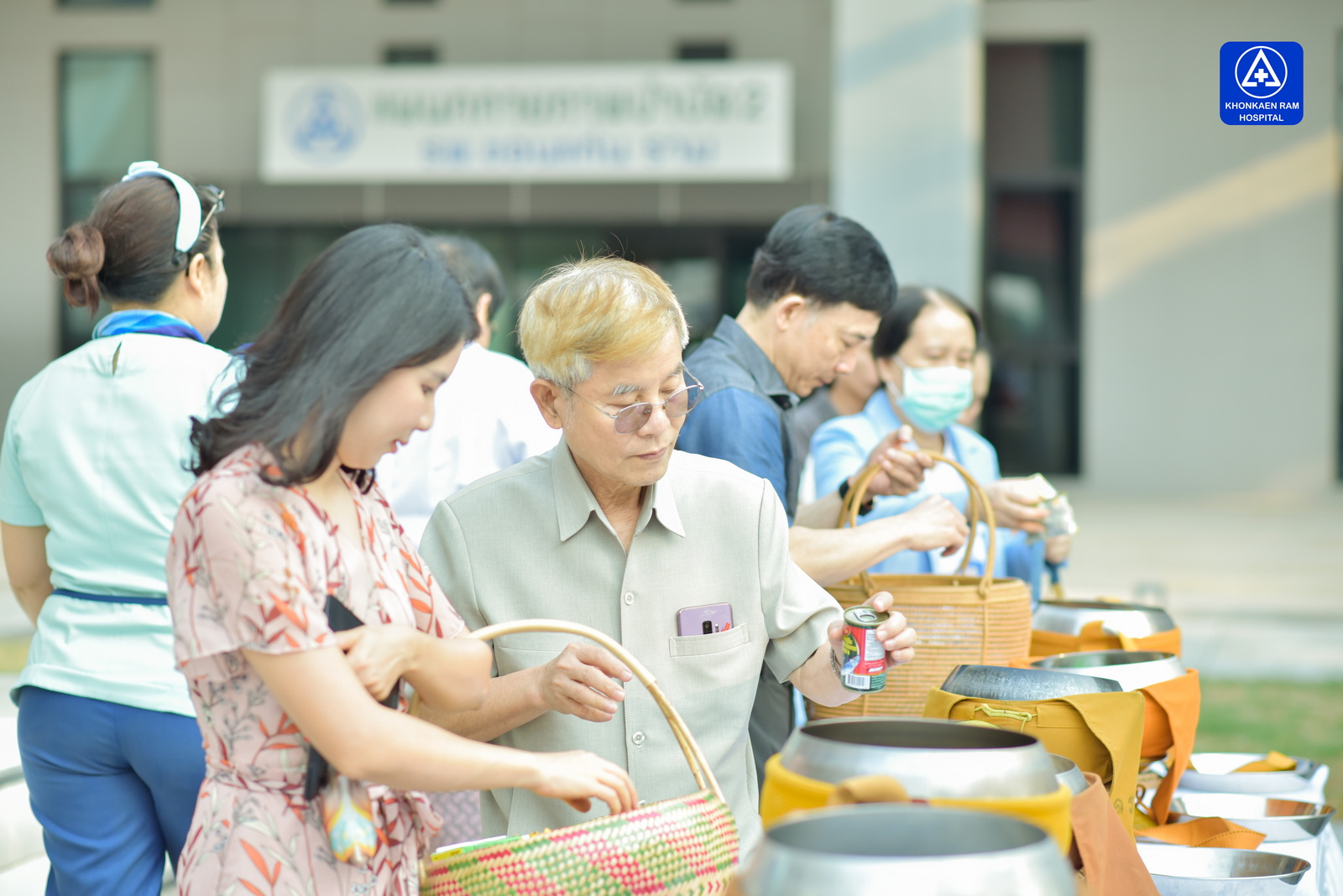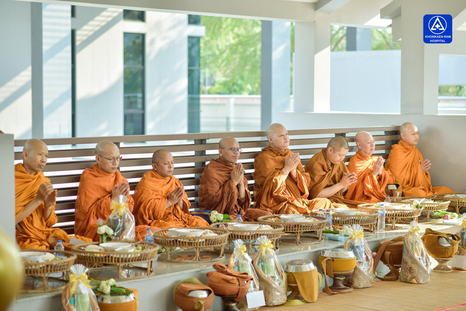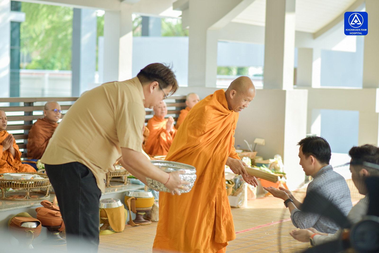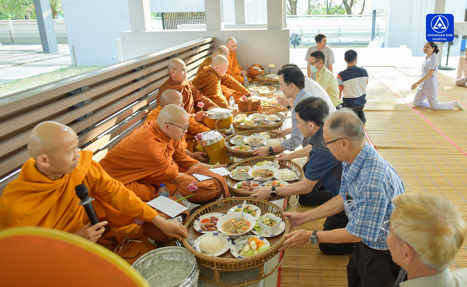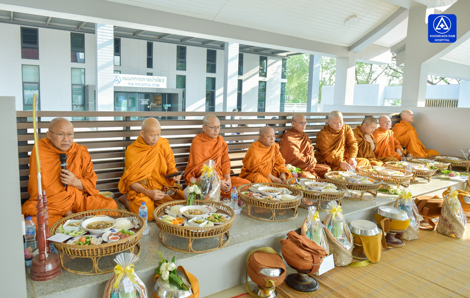 ได้จัดพิธีทำบุญตักบาตรข้าวสารอาหารแห้ง และถวายภัตตาหารเช้าแด่พระภิกษุจำนวน 9 รูป เพื่อความเป็นสิริมงคล ณ พุทธวิหาร รพ.ขอนแก่นราม