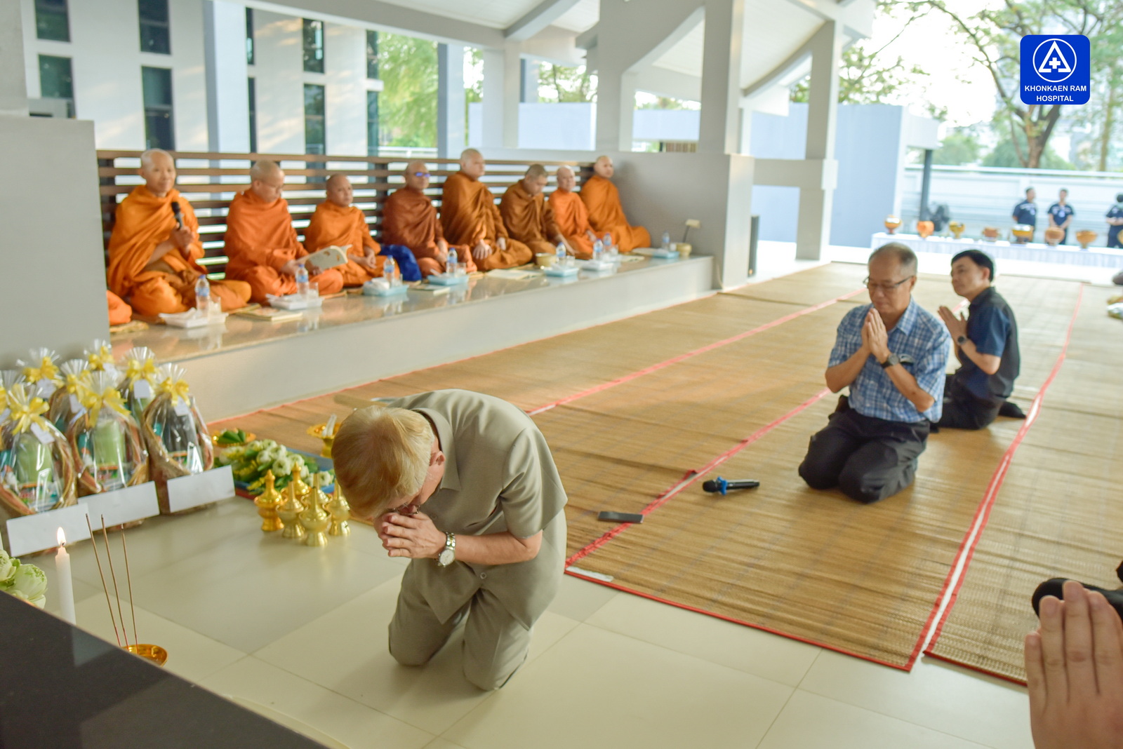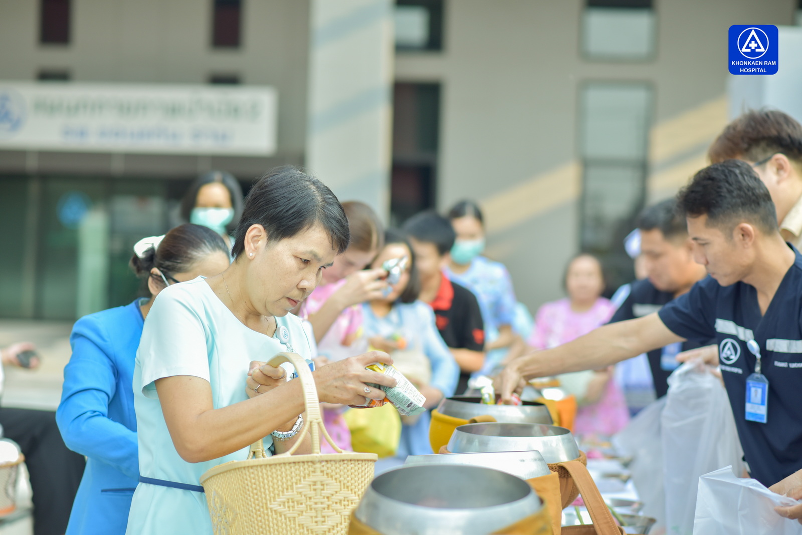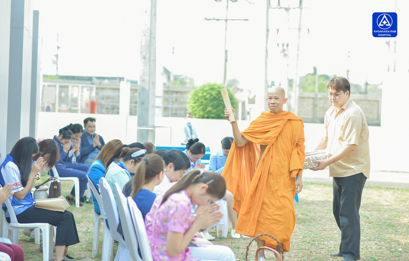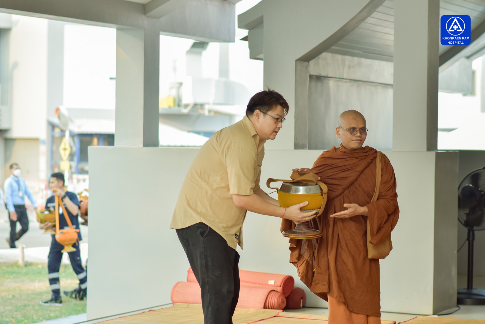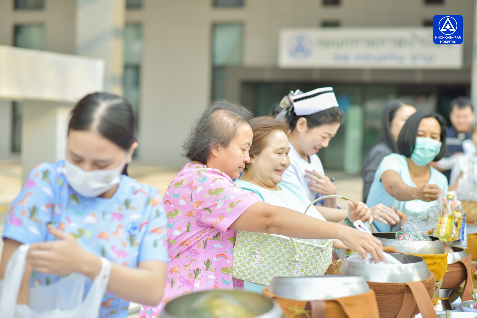 ได้จัดพิธีทำบุญตักบาตรข้าวสารอาหารแห้ง และถวายภัตตาหารเช้าแด่พระภิกษุจำนวน 9 รูป เพื่อความเป็นสิริมงคล ณ พุทธวิหาร รพ.ขอนแก่นราม