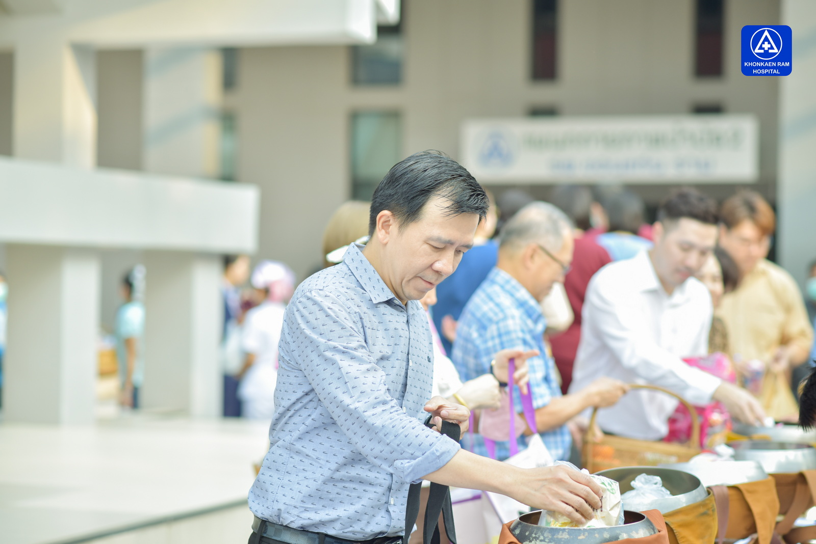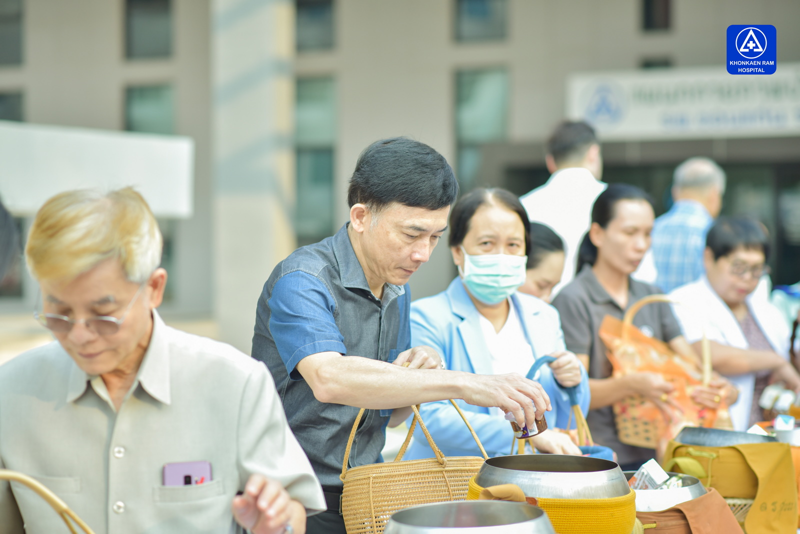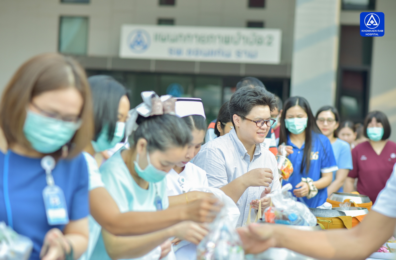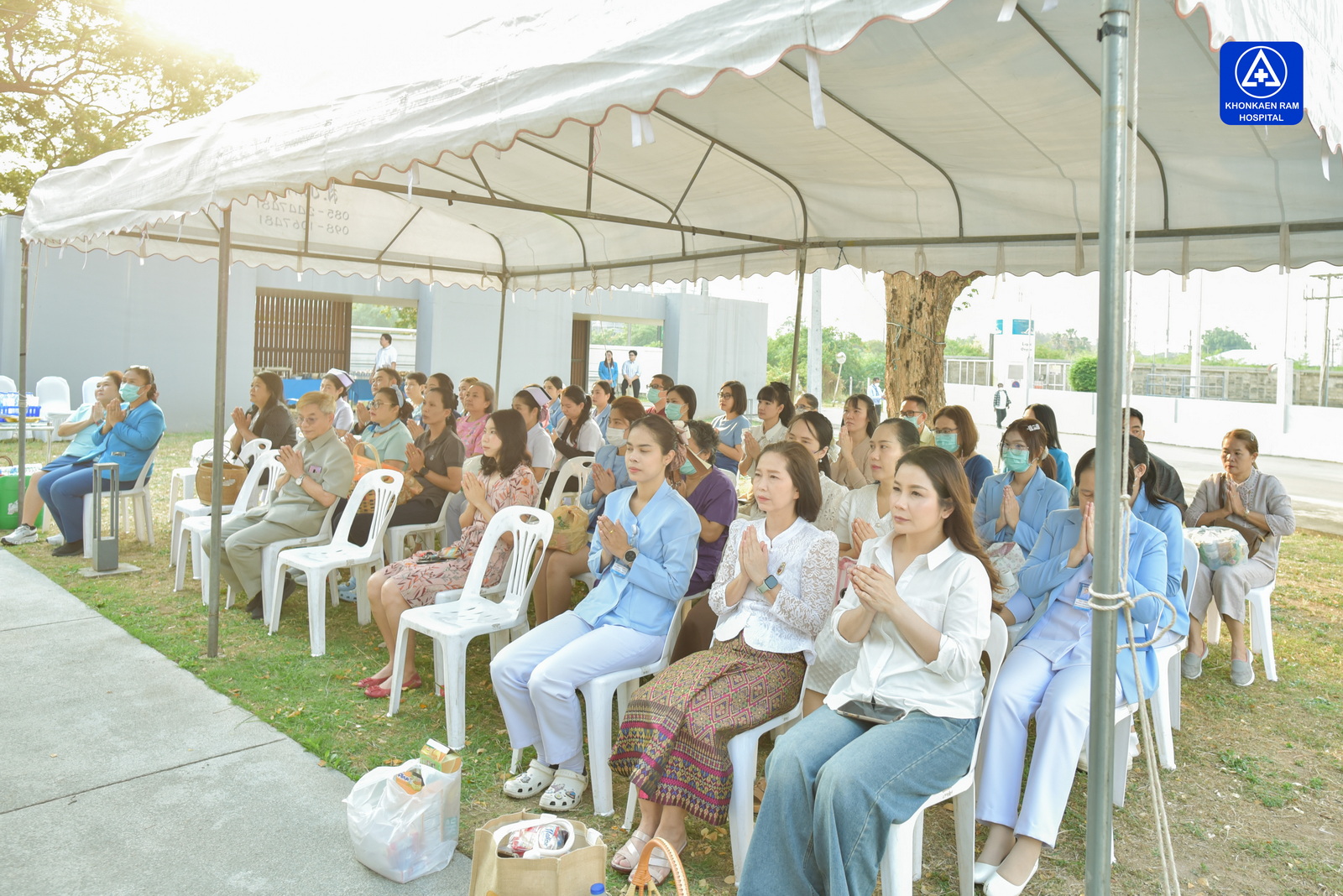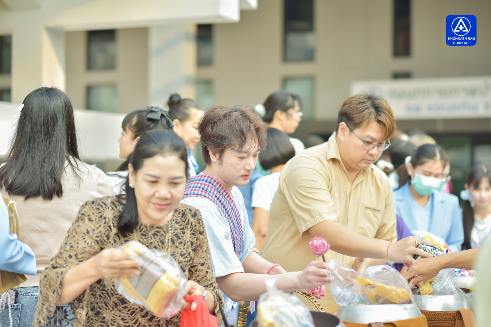 ได้จัดพิธีทำบุญตักบาตรข้าวสารอาหารแห้ง และถวายภัตตาหารเช้าแด่พระภิกษุจำนวน 9 รูป เพื่อความเป็นสิริมงคล ณ พุทธวิหาร รพ.ขอนแก่นราม