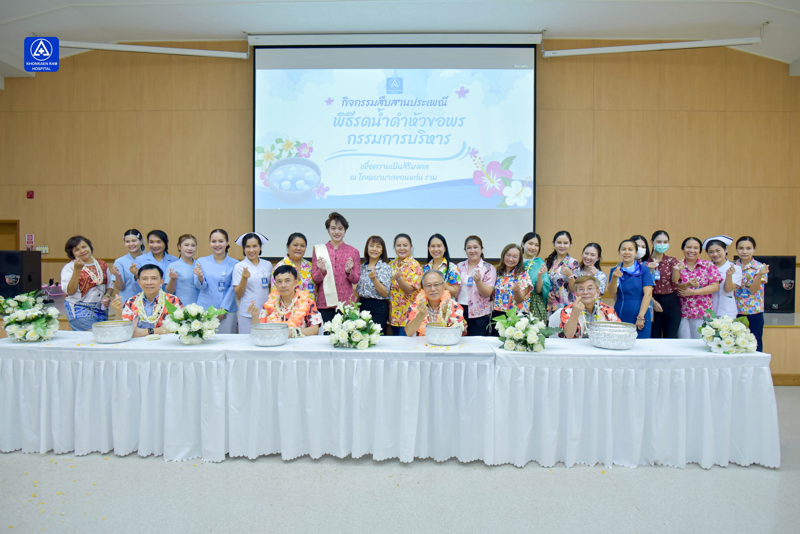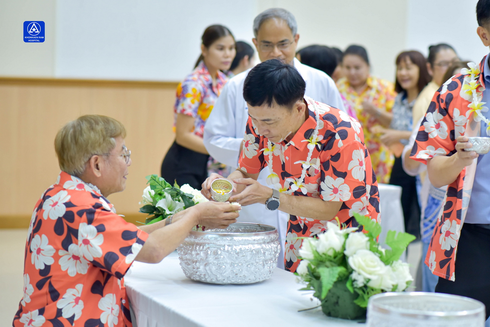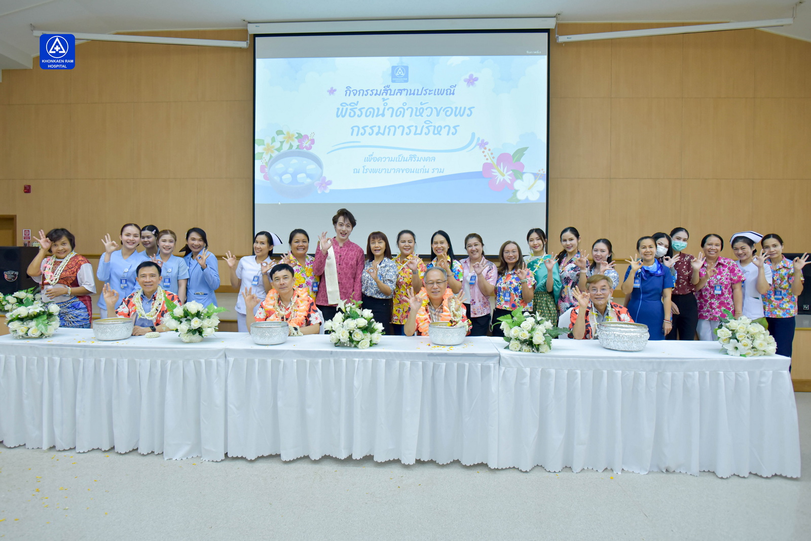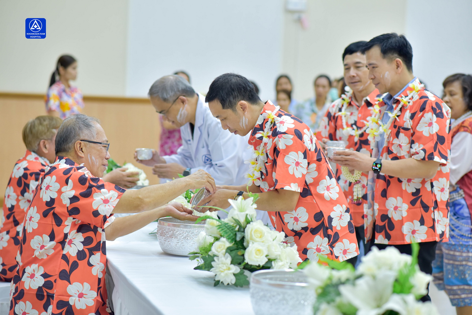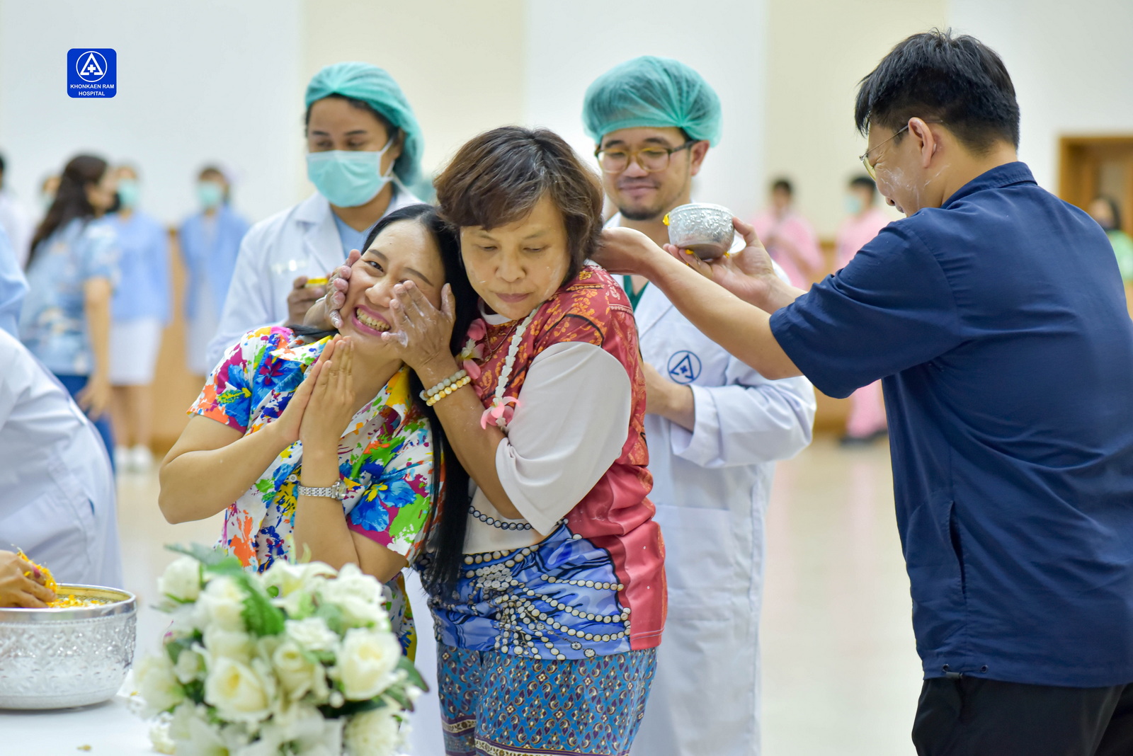 คณะแพทย์และบุคลากรโรงพยาบาลขอนแก่นราม สืบสานประเพณีไทย ร่วมกันจัดพิธีรดน้ำดำหัวขอพรคณะผู้บริหาร เนื่องในเทศกาลสงกรานต์ปีใหม่ไทย ประจำปี 2569 ในวันที่ 8 เมษายน 2569 ณ หอประชุมกันภัย ชั้น 11 อาคาร 2 โรงพยาบาลขอนแก่นราม ทั้งนี้บรรยากาศเป็นไปด้วยความอบอุ่นชื่นมื่น และสนุกสนาน