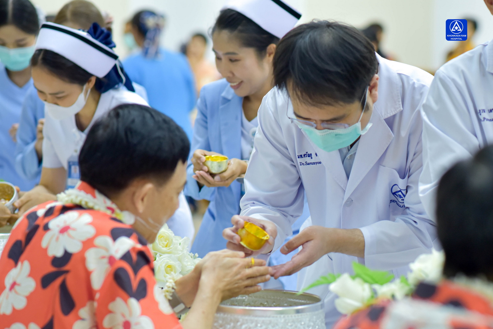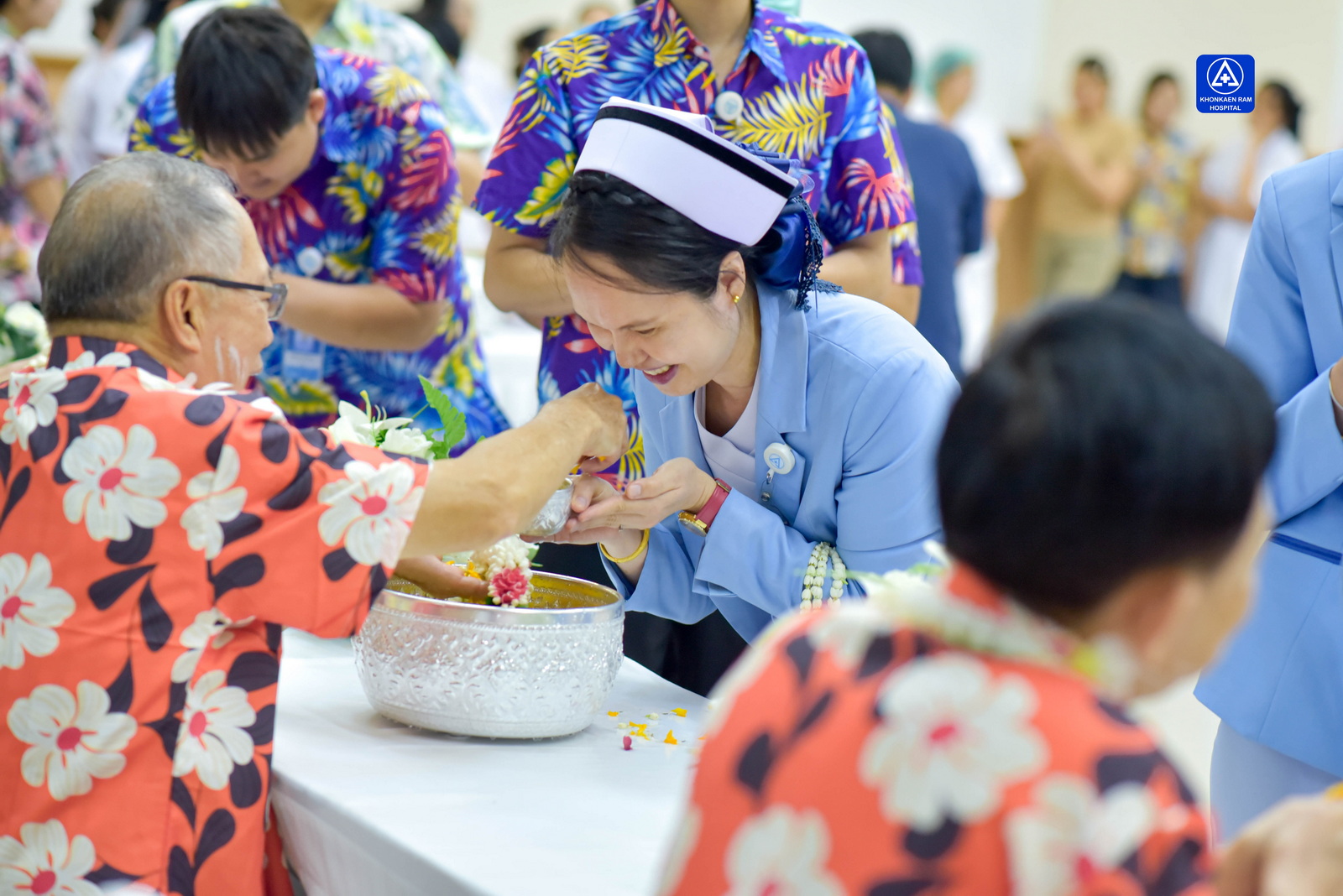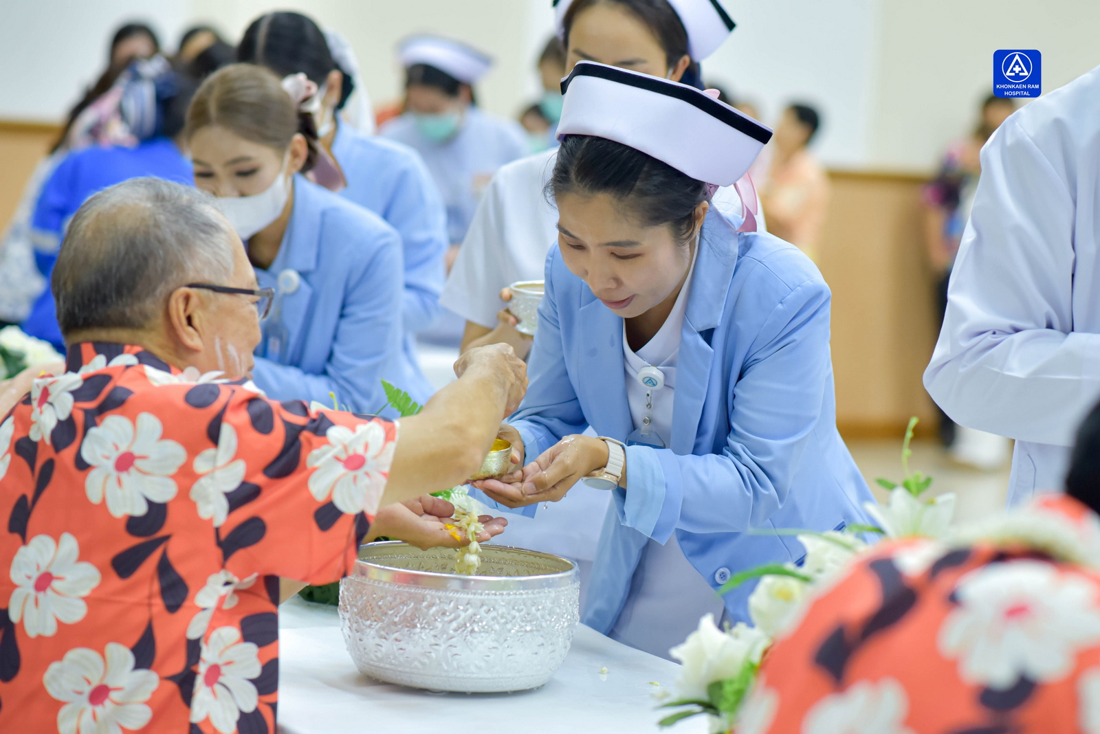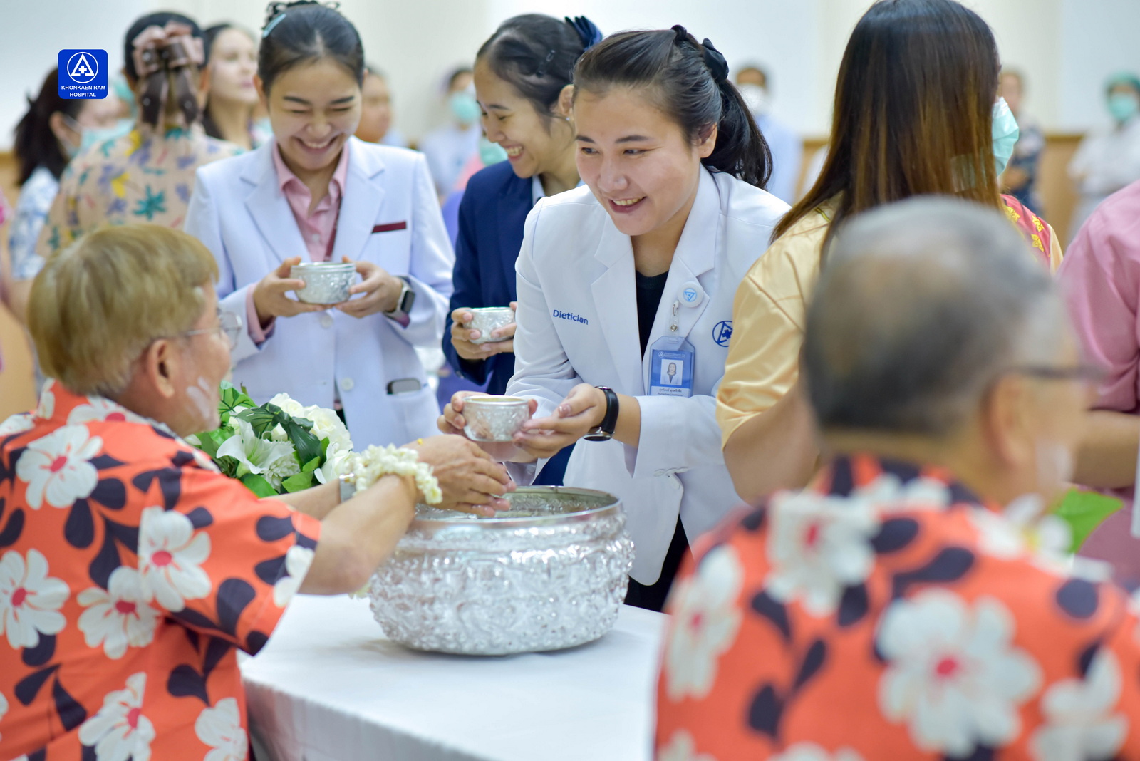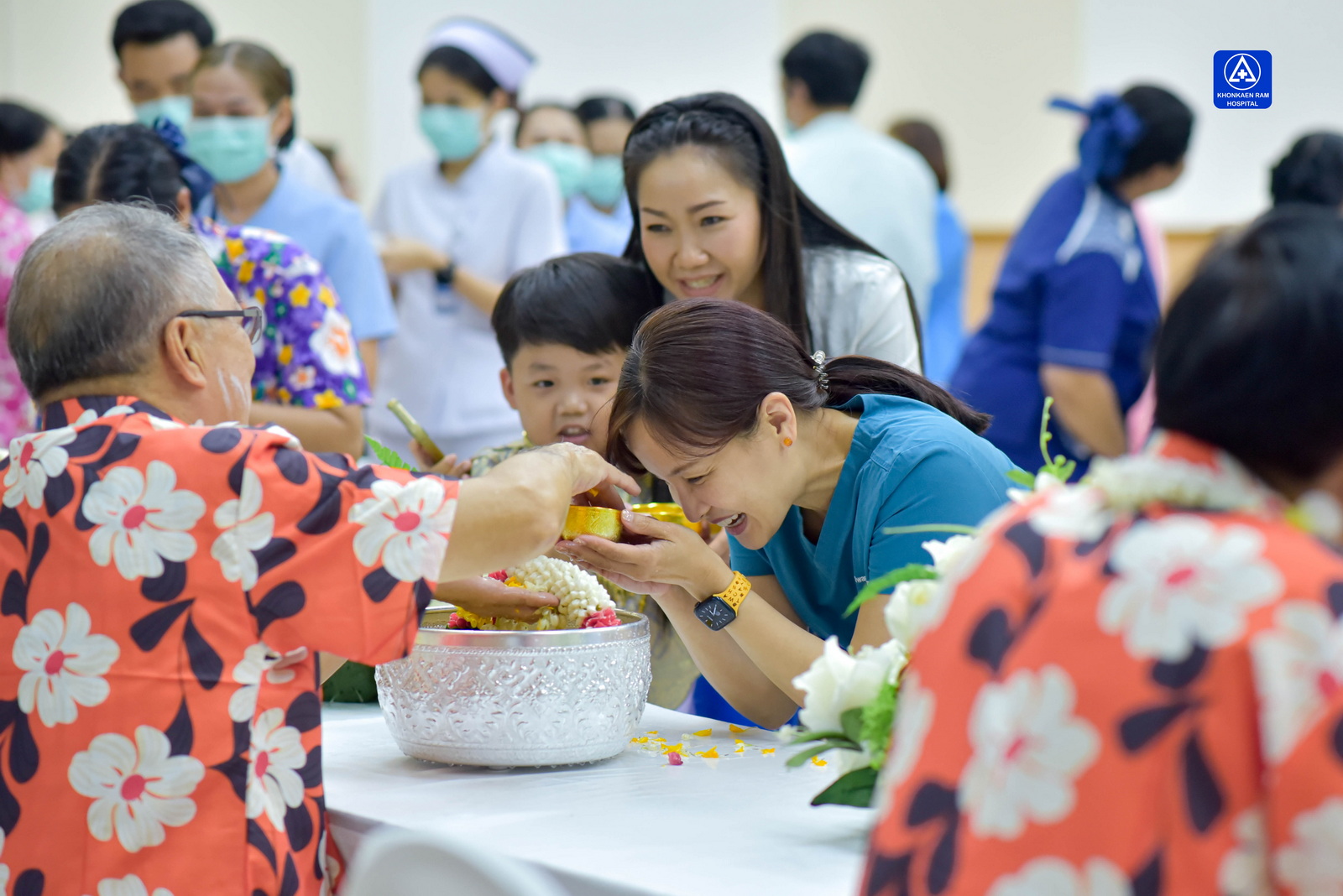 คณะแพทย์และบุคลากรโรงพยาบาลขอนแก่นราม สืบสานประเพณีไทย ร่วมกันจัดพิธีรดน้ำดำหัวขอพรคณะผู้บริหาร เนื่องในเทศกาลสงกรานต์ปีใหม่ไทย ประจำปี 2569 ในวันที่ 8 เมษายน 2569 ณ หอประชุมกันภัย ชั้น 11 อาคาร 2 โรงพยาบาลขอนแก่นราม ทั้งนี้บรรยากาศเป็นไปด้วยความอบอุ่นชื่นมื่น และสนุกสนาน