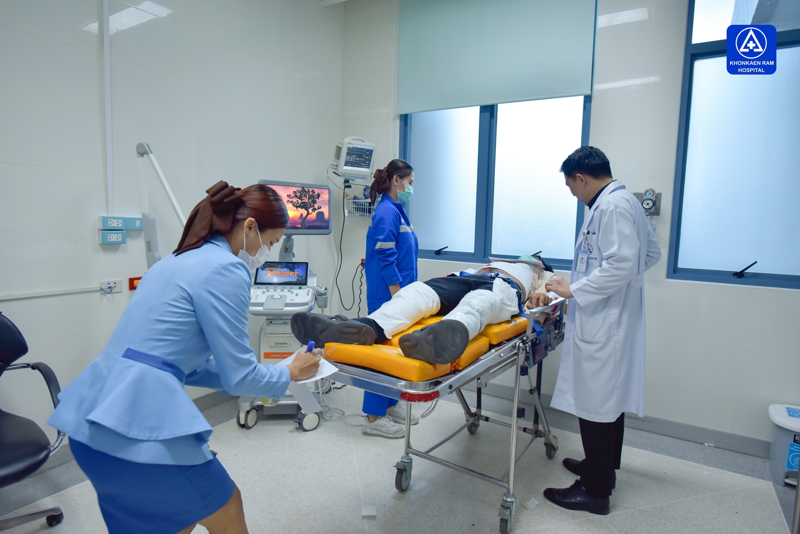 เมื่อวันที่ 24 พฤศจิกายน 2568 โรงพยาบาลขอนแก่นราม ได้ดำเนินการจัดซ้อมแผนปฏิบัติการฉุกเฉิน “อุบัติภัยหมู่” นำโดยคณะผู้บริหาร ทีมแพทย์ พยาบาล บุคลากรทางการแพทย์และทีมสนับสนุนทุกฝ่าย เพื่อทบทวนและทดสอบความพร้อมของระบบบริหารจัดการสถานการณ์วิกฤต ให้สามารถตอบสนองต่อเหตุการณ์ที่มีผู้บาดเจ็บจำนวนมากได้อย่างมีประสิทธิภาพสูงสุด