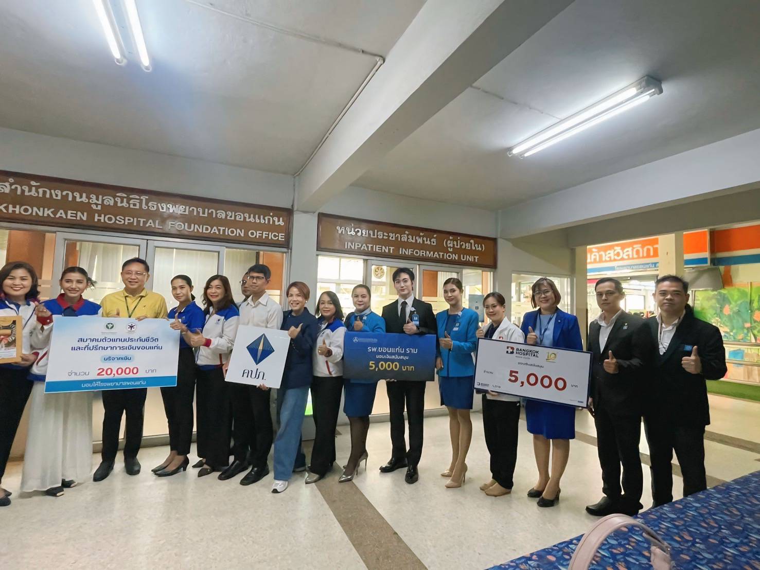 โรงพยาบาลขอนแก่นราม ร่วมกับ สมาคมตัวแทนประกันชีวิตและที่ปรึกษาการเงิน จ.ขอนแก่น ร่วมบริจาคเงินสมทบซื้อเครื่องช่วยหายใจให้แก่ มูลนิธิโรงพยาบาลขอนแก่น และ กองทุนวันศรีนครินทร์ ในพระบรมราชูปถัมภ์ฯ เนื่องในโอกาส วันประกันชีวิตแห่งชาติ ในวันพฤหัสบดีที่ 31 กรกฎาคม 2568 โดยได้รับเกียรติจาก นายแพทย์สุรสิทธิ์ จิตรพิทักษ์เลิศ ผู้อำนวยการโรงพยาบาลขอนแก่น และ ศ.นพ.สมศักดิ์ เทียมเก่า ผู้อำนวยการโรงพยาบาลศรีนครินทร์ เป็นผู้รับมอบในวันนี้.