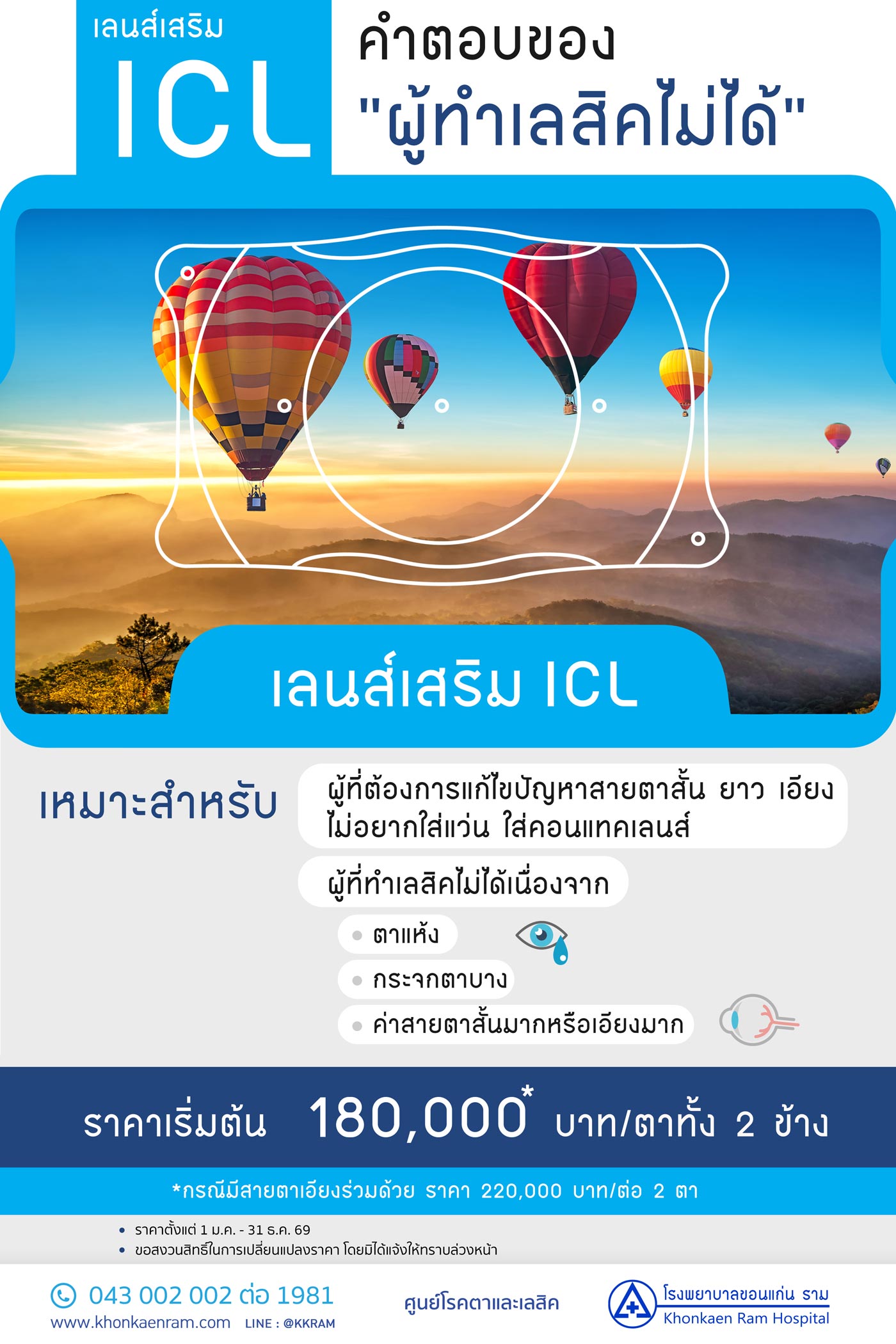 - ป้องกันรังสี UV เลนส์เสริม ICL จะช่วยปกป้องดวงตาจากรังสี UV จากแสงอาทิตย์ได้ โดยที่เลนส์ยังคงคุณสมบัติให้แสงผ่านได้ทั้งหมด